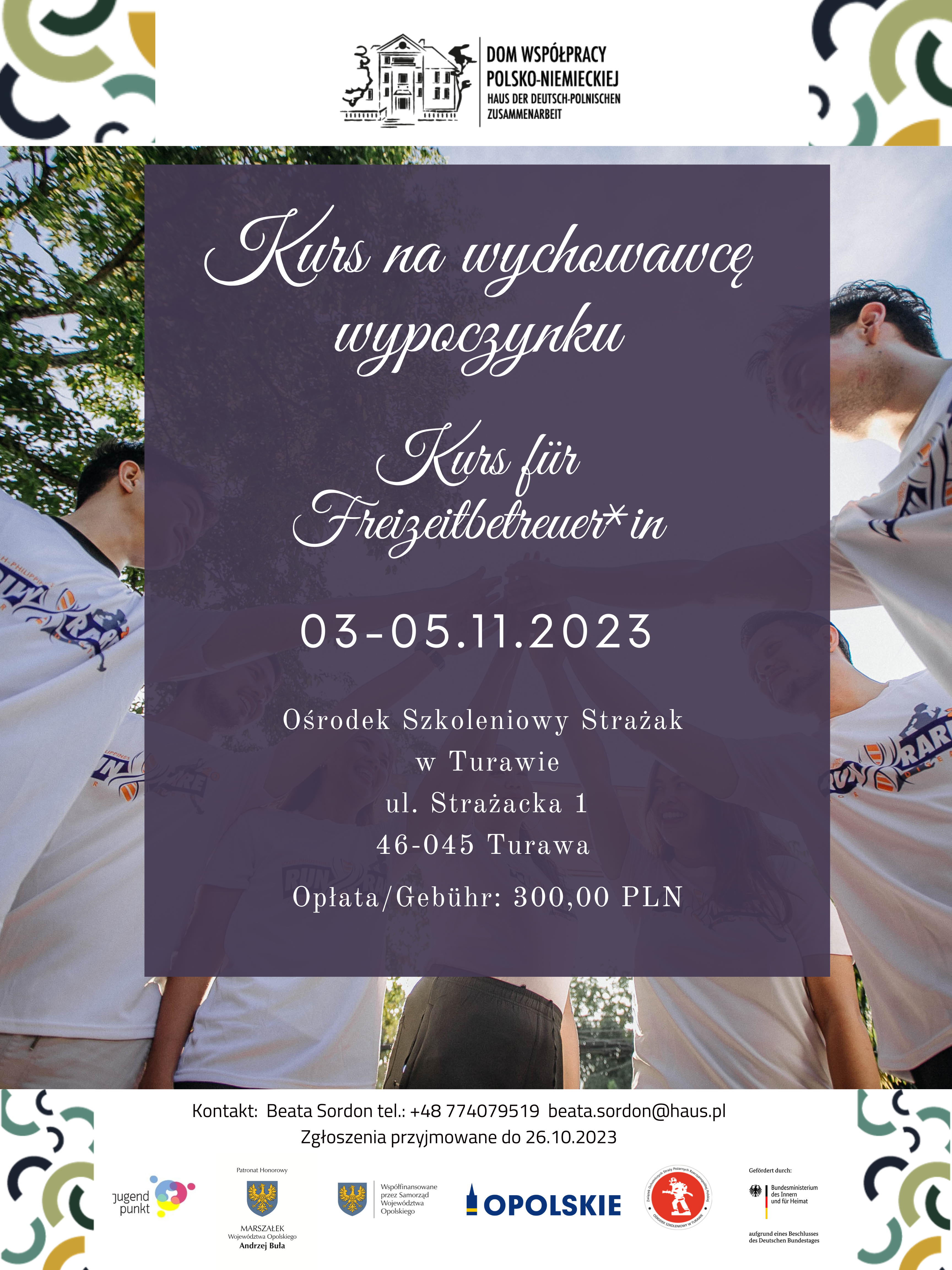 Das Haus der Deutsch-Polnischen Zusammenarbeit organisiert vom 3. bis 5. November 2023 einen Kurs für Freizeitbetreuer, in dem Ausbildungszentrum „Strażak“ in Turawa.